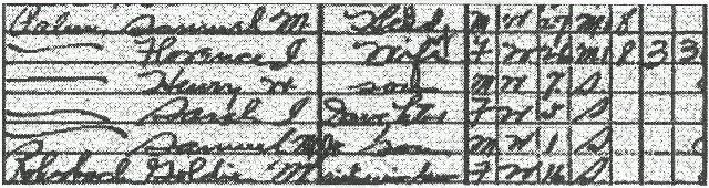 for eight years. They had three children ages 7, 5, and 1. One interesting observation in this census form is the name of their oldest son. He is listed as Henry W; not as William Henry. As you look at the columns you can see their relationship to the head of the household, that they were all white and two were married and the rest were single. Another column shows whether they were male or female.