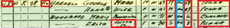 Purple marker on the map at the left shows 118 West Union Street in West Chester, PA. (CHESTER COUNTY)![]() Uncle George was a fireman on a locomotive making $1800 per year. Anne and Edith were some kind of machine operators making $800 and $432 per year. Anne's mother Mary lived with them. Edith was Anne's sister. They rented their home for $28 per month. The circled x indicates who responded to the census worker's questions. It looks like Anne gave George's correct age. Anne had 3 years of high school (H3). George had one (H1). Mary completed the 6th grade. Edith completed the 8th grade. Pause your cursor in each red or blue box for an explanation of the census worker's entries. In the 1930 census they were living at 18 S. High Street in West Chester. They had married in 1924. |