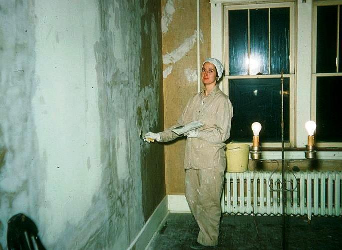 | She was my human T-bar to hold drywall in place so I could nail it to the ceiling. | She was a pro at spackling even when pregnant. She made our curtains too. |