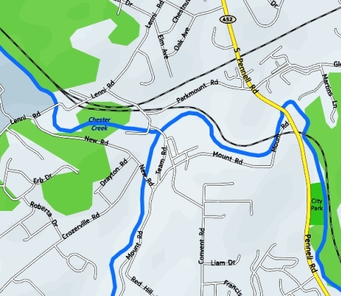 the Crozerville section of Aston, PA. That section is highlighted in yellow