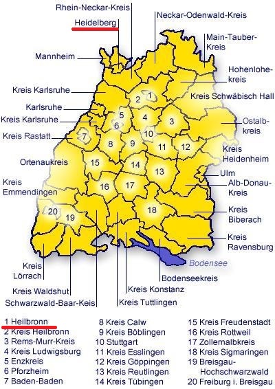 Counties of Baden Wuerttemberg and Rivers of Germany |