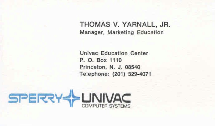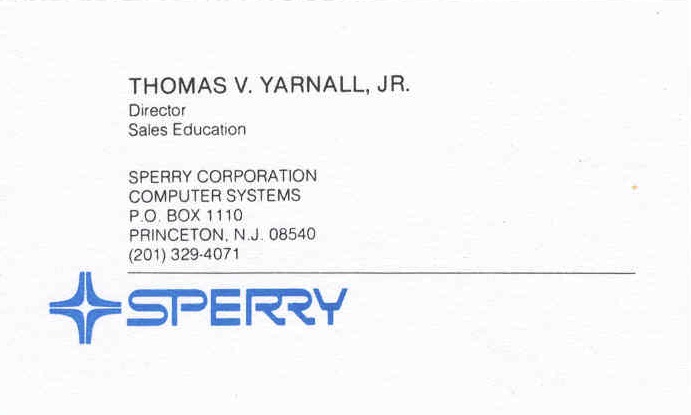 This was the best job of my life. I was able to build a staff that was a solid group of sales trainers. We developed courseware for training sales reps in sales techniques, industry areas, and product knowkledge. We conducted classes for reps from all over the world. We established a promotional path for sales reps to be on our staff and then proceed into management positions. Below is my business card after the job was raised to the level of director around 1980. That meant stock options and a great salary. |