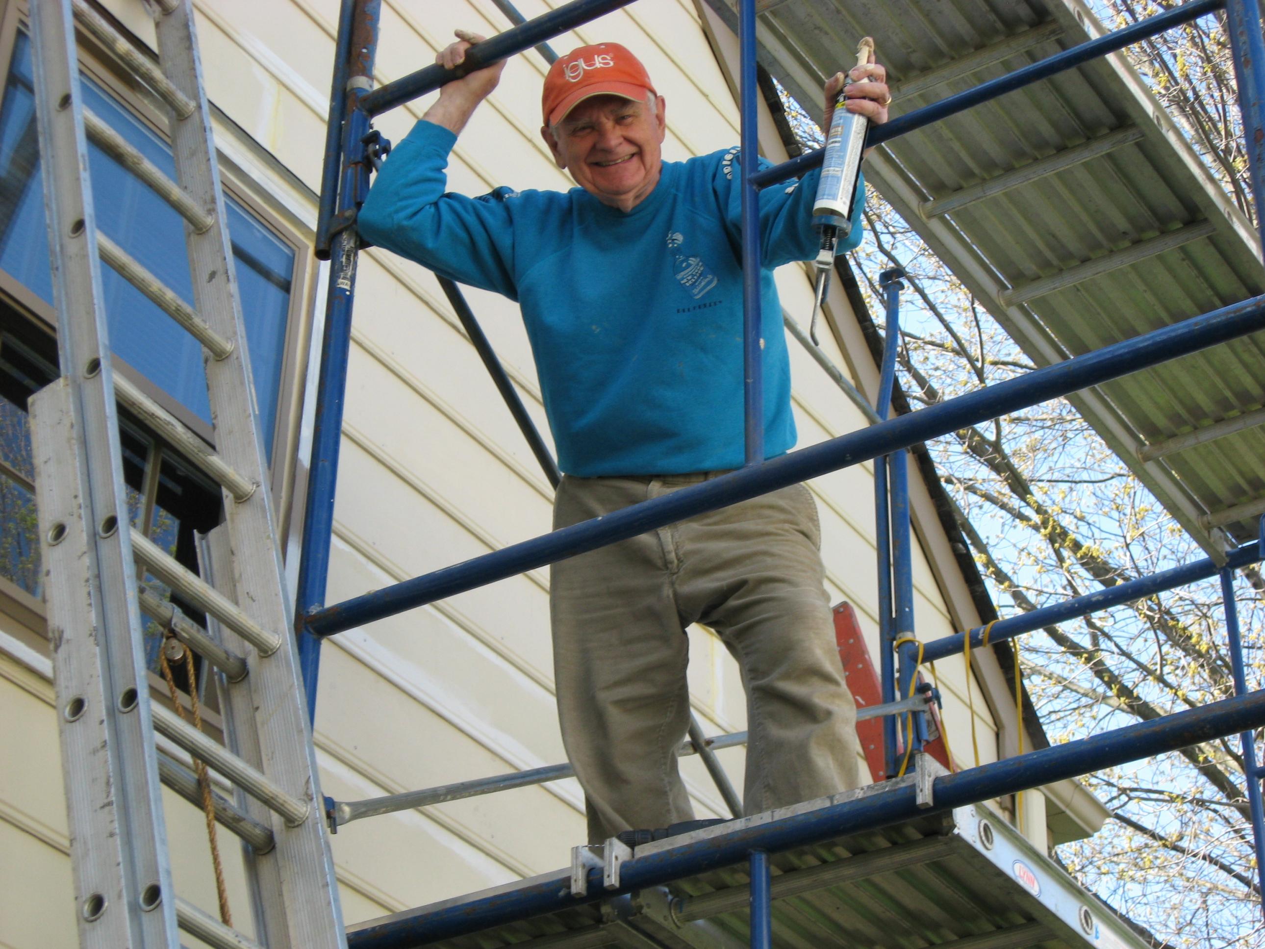 Glad I was able to keep on doing things like siding repairs at age 77.