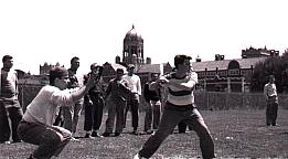 | Top left picture taken in Cedar Crest Park (in the valley between Muhlenberg and Cedar Crest Colleges) to send home to folks. Top right picture was taken by my mother as I walked off the soccer field after playing a game against Lehigh. Pyramid picture taken on campus with classmates. Bottom picture taken on campus at intramural softball game. |