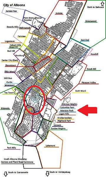 | Columbia Park section below is outlined in light gray. | We lived in the south-central part of Altoona. |