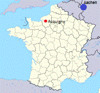 Prior to the Nottingham origin, there are two theories about an earlier origin. Was it the blue or the red spot? Was it Aachen, Germany or D'Acquigny, France?