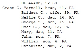 For Aston the census was taken on January 13th and 14th. The Grant Yarnall family