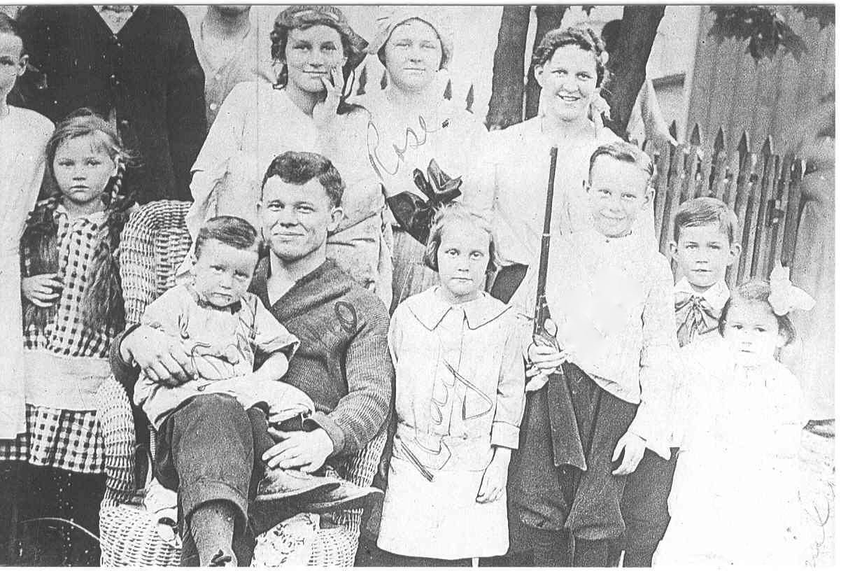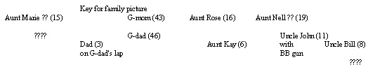 My dad is on his father's lap. Aunt Kay, Uncle John, and Uncle Bill are to the right of their dad. Uncle George