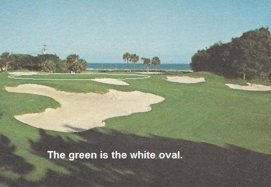 ![]() The water got me often on this hole. My scores over the five rounds were: