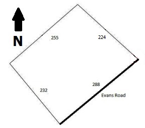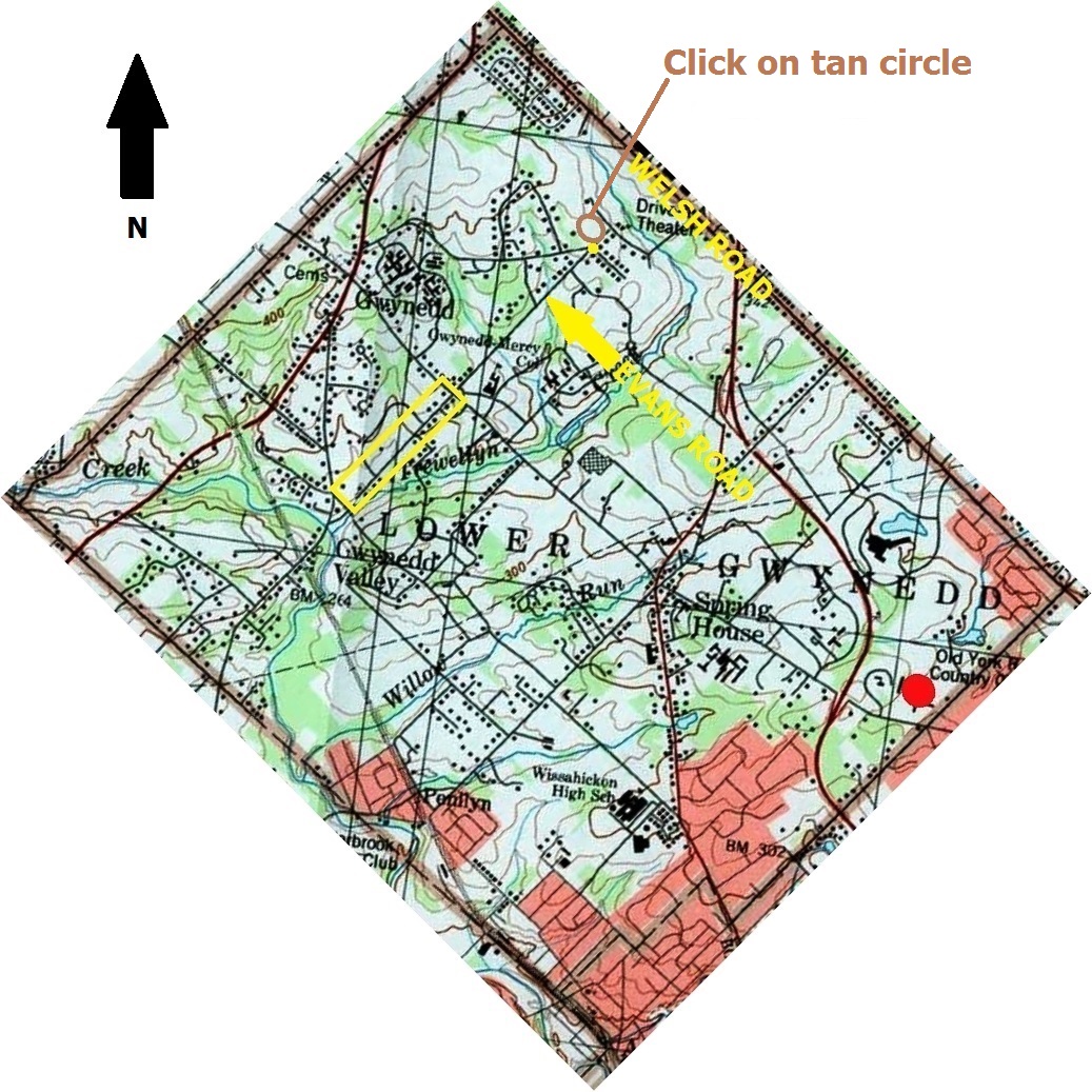 point .(southern most point of drawing below). . on . . Meeting House Road . . also on Evans Road (see yellow dot in above map)