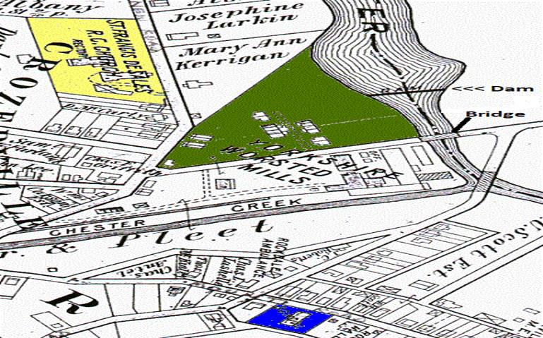 A close-up view of the Crozerville area shows the Yorkshire Mill housing area