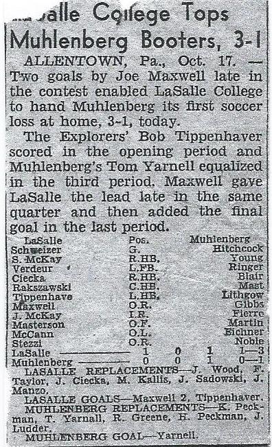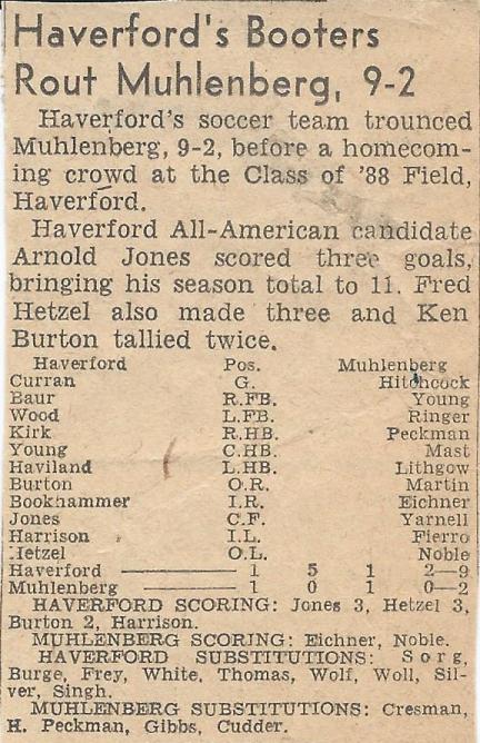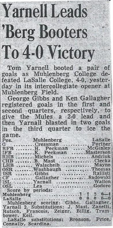 | Below are the soccer team schedules for the years he played at Muhlenberg. His senior year they finally won two games. Losing was common the first two years - Haverford was tough! | Some clippings about two games. I was a sub at first for Martin at Center Forward. |