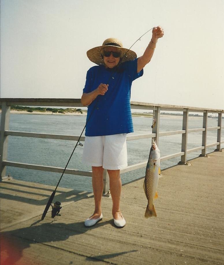 | Mother got a plaque for this catch. Scroll down and take a look at it. She might be five feet tall at the most at this point in her life. Is it about a third of her height? Not bad for a little old lady from New Jersey. Pause your cursor on the picture for one of her typical comments. |