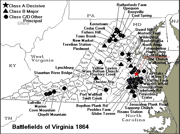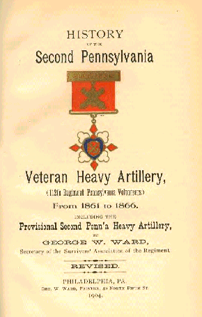 | Below is a map of the many battles in Virginia. The one where he wounded himself is highlighted with a red star. | Below is the cover of a book about the Second Pennsylvania Heavy Artillery (2nd PA HA) |