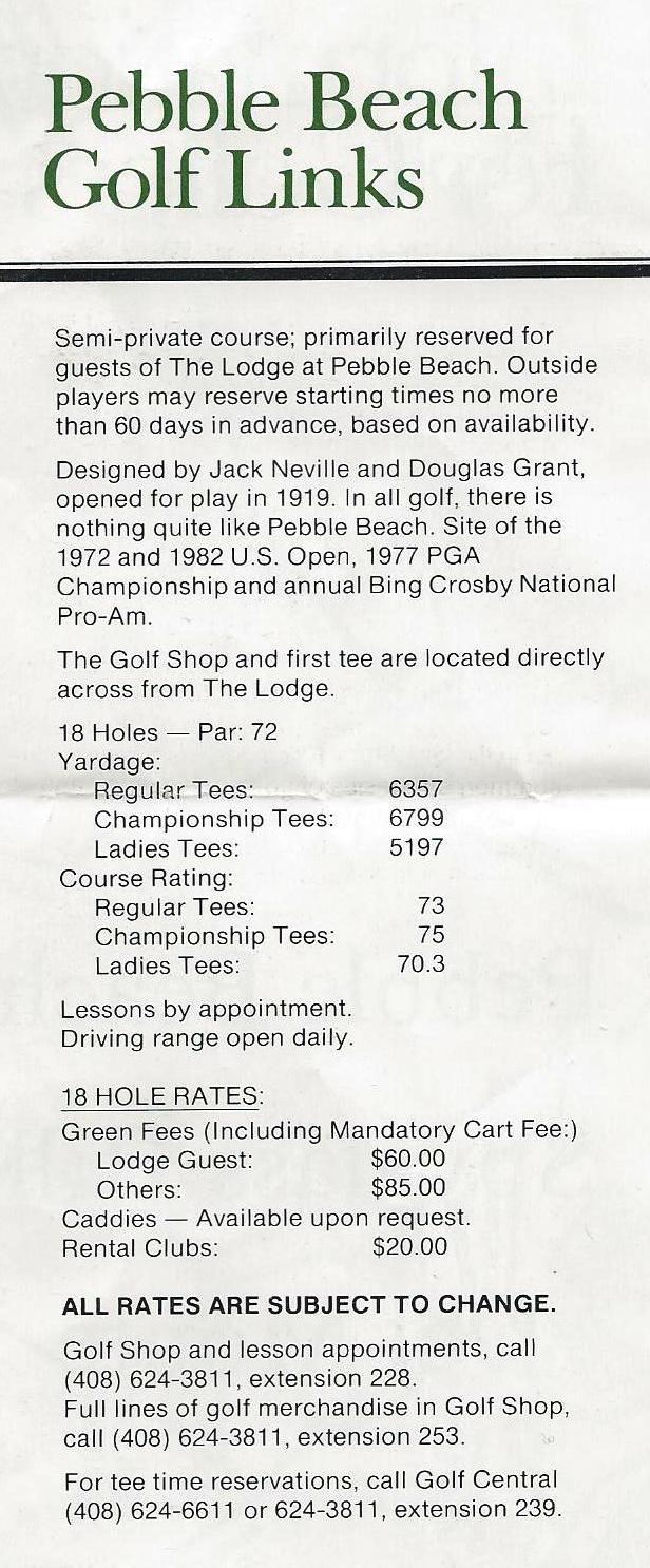 Pebble Beach 1984 Rates |