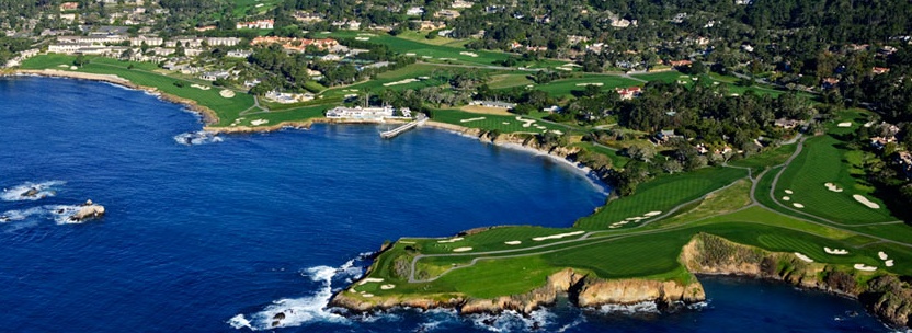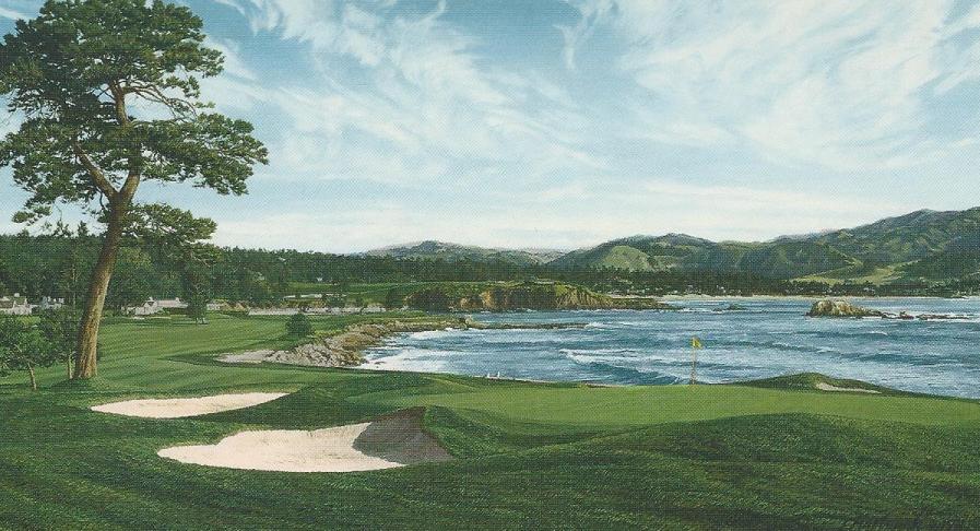 | Packages for two rounds of golf and three nights at the Lodge in 2013 range from $2,500 and up for one golfer. One round of golf is at Pebble Beach and one round is at Spyglass. My brother and I each paid $85 for our round of golf in 1984 in this beautiful setting. I tried a year in advance to get a tee time. We got tee times at other courses, but none at Pebble Beach. The first morning we went over to just look at the course. We had breakfast overlooking the practice putting green. After breakfast, I decided to go up to the starter to see if there were any cancellations. As I walked up the hill to the pro shop, I got a crazy thought. I will go in and announce that the Yarnall twosome was ready to pay the fee and play. The man at the counter was sorry and felt there might have been a mistake made by someone as I told him that I called to make the reservation about a year ago. He said he would squeeze us in with a twosome in about an hour. I ran down the hill and told Bill to get our shoes and clubs. What a wonderful lucky break! Below is a view at the 18th green. That tree is gone now. Below that is an aerial view of the coastline at Pebble Beach. ![]() ![]() At the far upper left corner of this picture, you see the 18th hole. In the bottom front center of this picture, you see the 7th hole. |