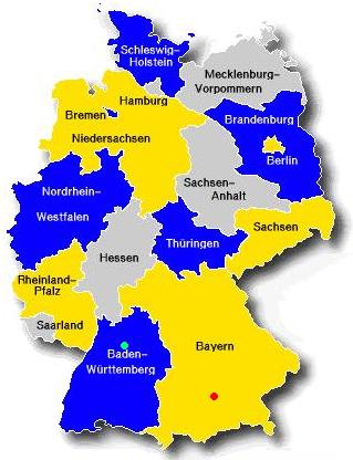 The map below shows the current 13 states in Germany. There was a consolidation of hundreds of estates in 1871. Baden-Wurttemberg is in the lower left part of Germany. Pause your cursor just to the left of Baden-Wurttemberg. My mother was told her ancestors were from the Alsace area. Perhaps someone did not know the facts revealed on this page. They were from the Wurtenberg (old spelling) section of Swabia that later was called Baden-Wurttemberg. The name Germany is used in three ways: