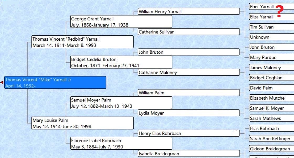 Click on a male name (except on far right) or on my mother's name for info about them.