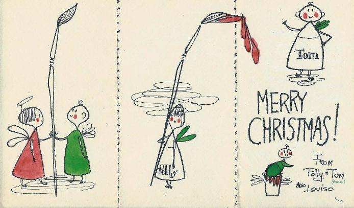 The arrow in the lower right corner pointed to a message from Polly to Tom's mother on the back of the card.