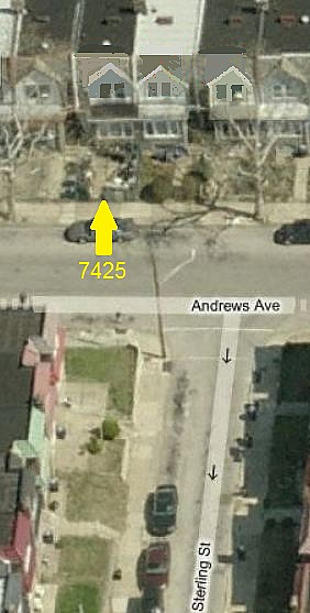 I think this was the first house for the Ruth and Vincent Cheverelli family. It was much nicer when they lived there as can be seen in the Easter picture of Polly and her sister Carolyn. The aerial picture with the yellow arrow shows concrete instead of a grassy front lawn. See aerial picture at left. |