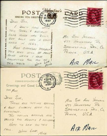 | Fronts of postcards to my brother Bill and sister Sue. | Messages sent to them. |
