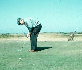 | My putt is on the edge of the cup. | Charlie Shaver at the 18th Hole Bridge. |