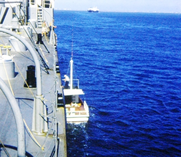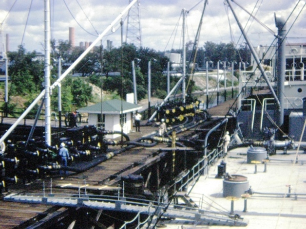 The bottom two show a pilot coming aboard to guide us up the Delaware River and how the hoses were attached to load us with crude.
