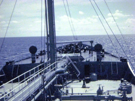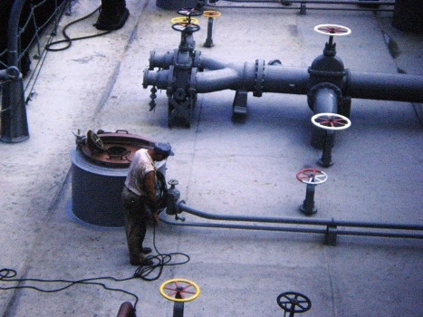 Some neat pictures that I took during the summer I worked on a tanker. The top three show a deck hand at work, a view looking aft, and a view looking forward.