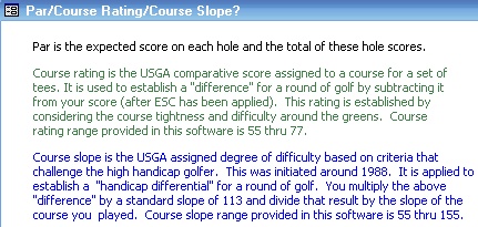 The explanations below are from my golf handicap program. My entry in that program for this score on May 8, 1971 is there.