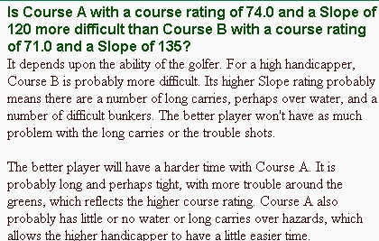 The Indian Spring course had a course rating of 67.8 from the white tees. A course slope was not established until 1988 when it was 111. My opponent had an 11 handicap