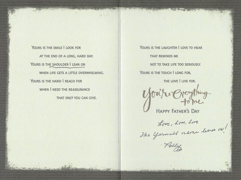 The nicest father's day card I ever received. This is from the woman who made my life so wonderful for 62 years and counting.